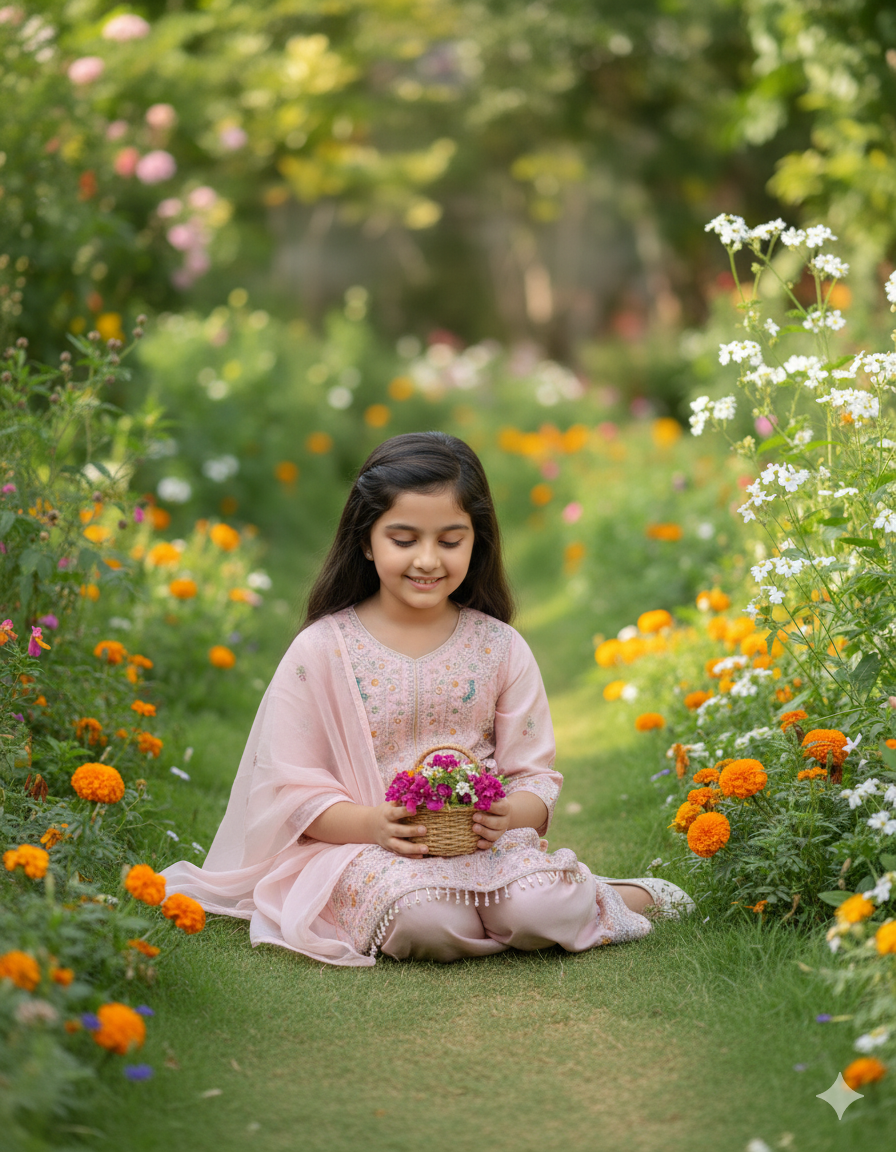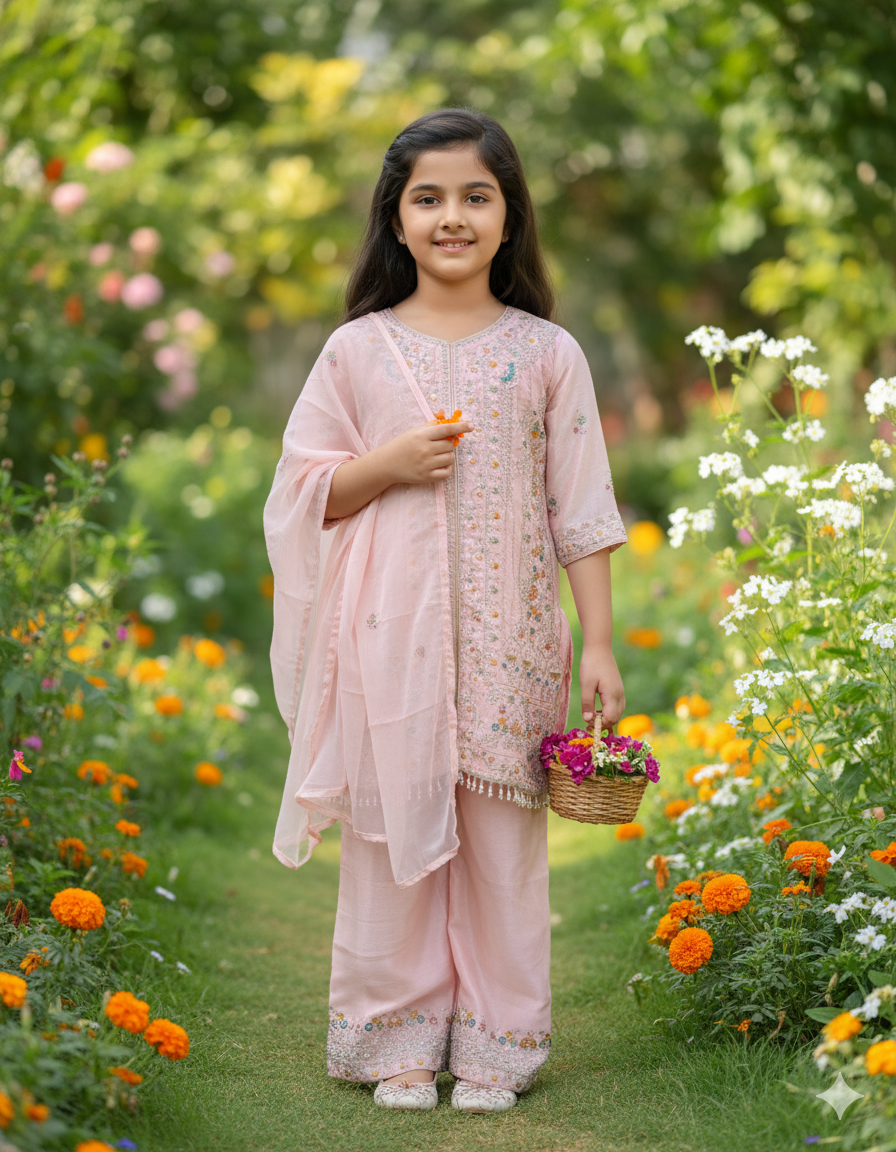 Designed for both breathtaking beauty and comfortable movement, the "Majestic Ruby" Sharara Set will ensure your little one feels like royalty while celebrating with ease and confidence.
