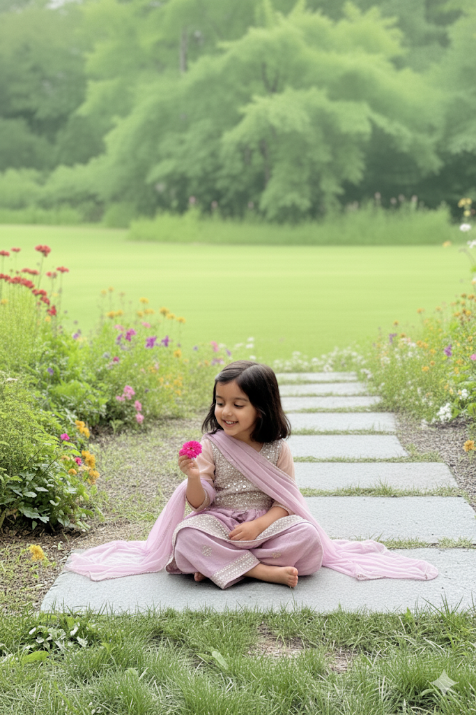 Crafted from high-quality, lightweight fabrics, the “Lavender Dewdrop” Lehenga Set ensures your child stays comfortable while looking effortlessly elegant. The delicate embellishments and thoughtful design make it perfect for festive celebrations, weddings, and special events.