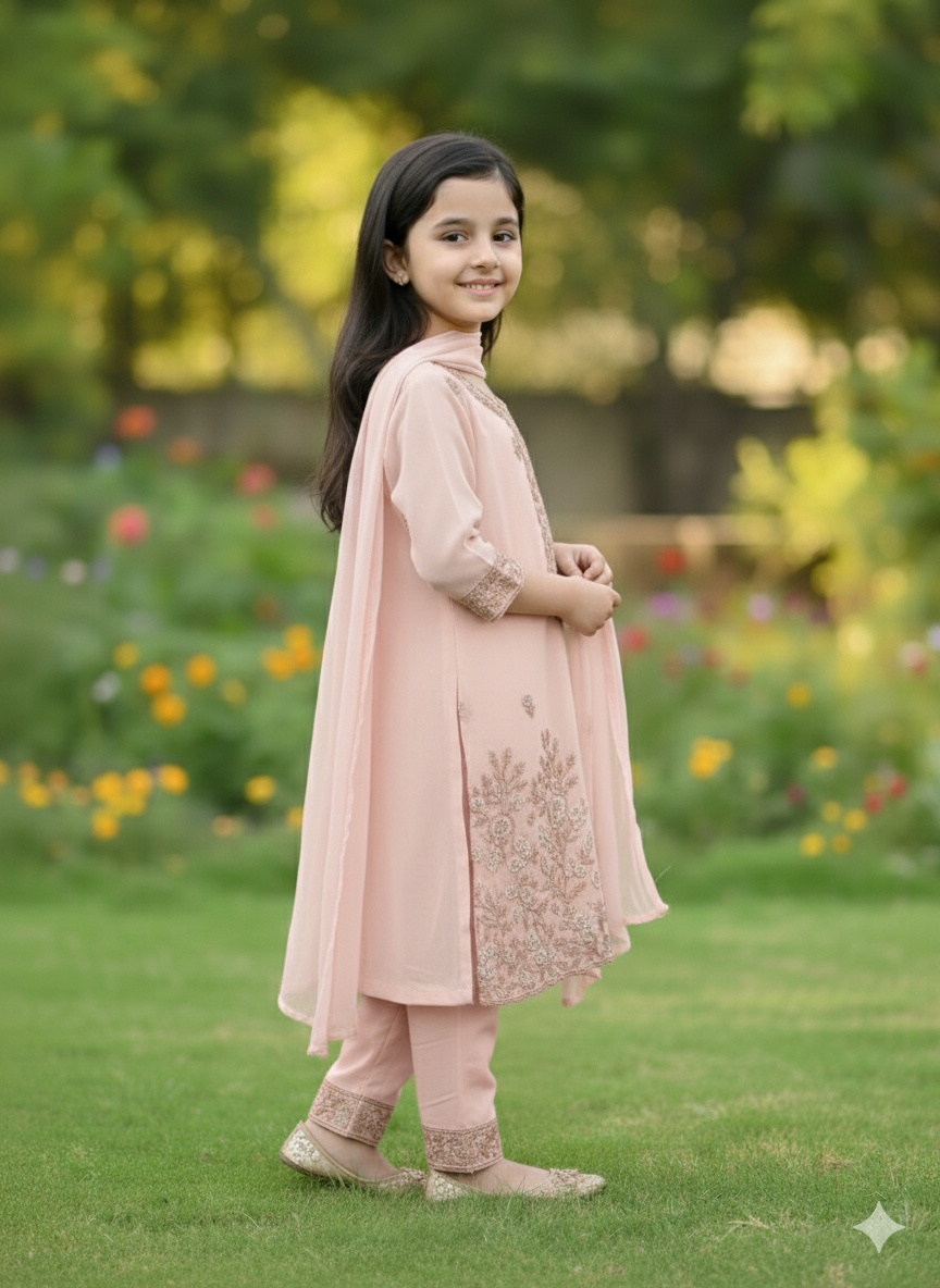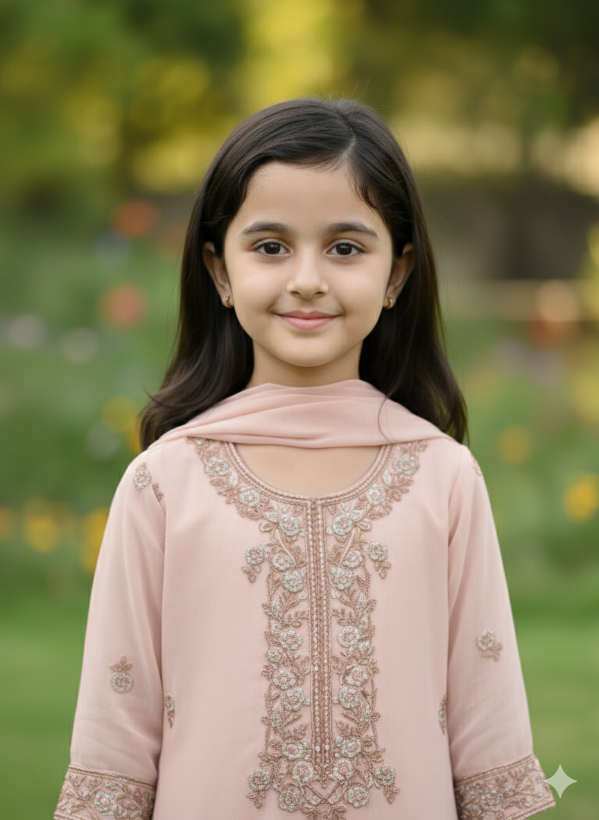 Let your little one bloom in our delightful "Flamingo Meadow" Embroidered Kids Kurta Set. This charming three-piece outfit, in a refreshing flamingo pink hue, is perfect for adding a touch of serene elegance to any occasion.